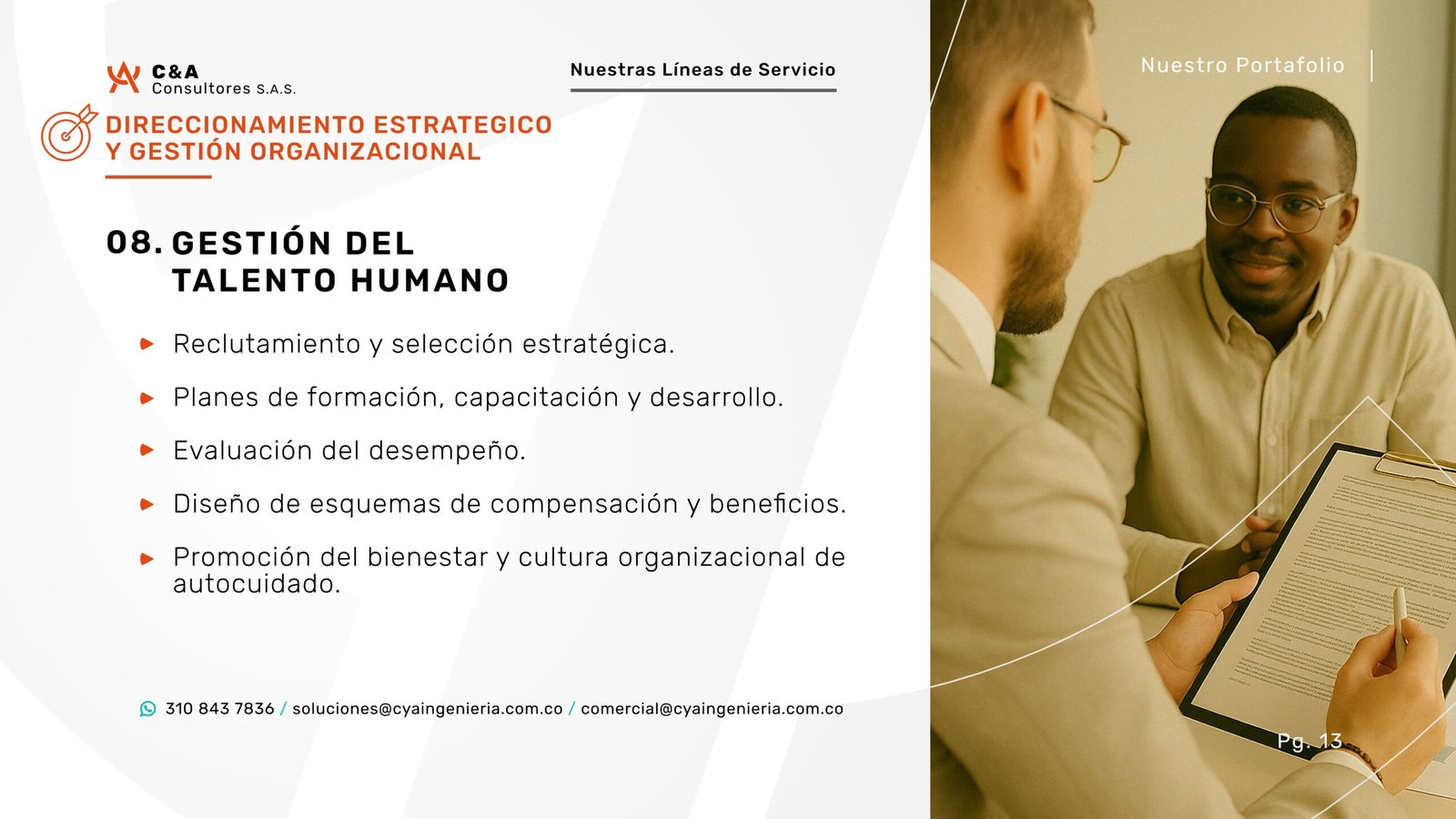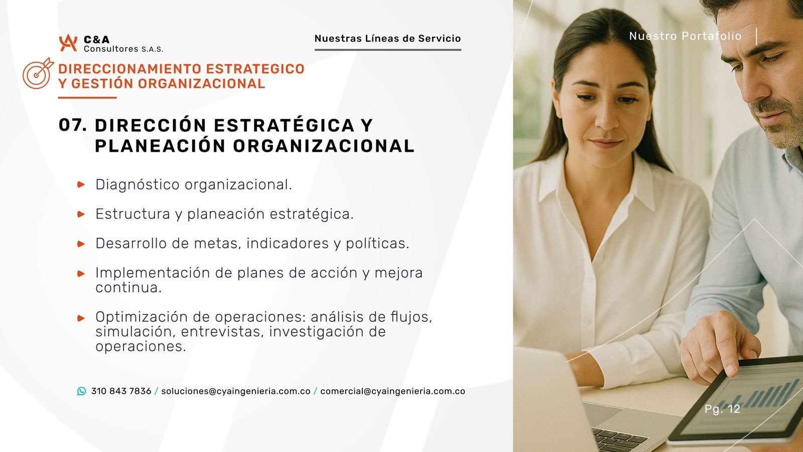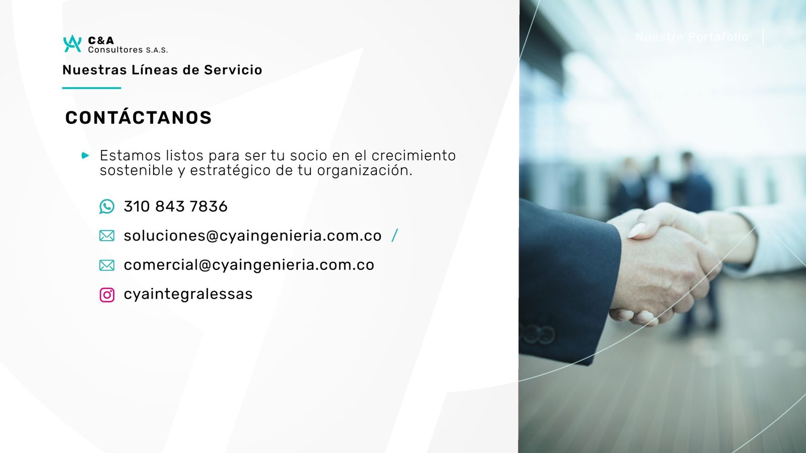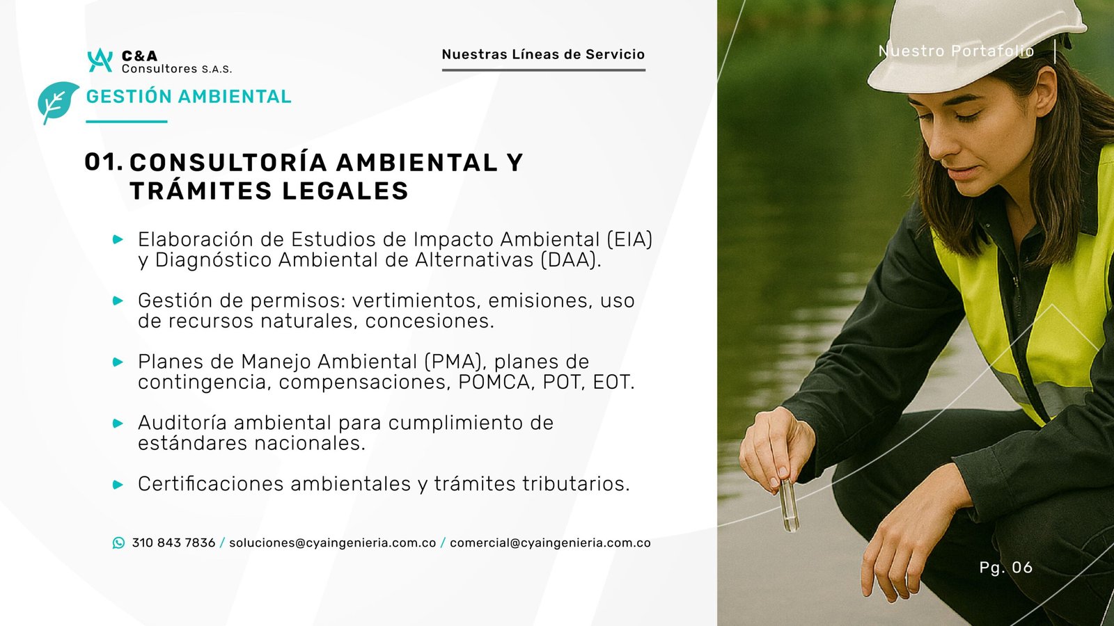 En C&A Consultores Integrales S.A.S. consolidamos un equipo multidisciplinario de expertos en consultoría organizacional, ambiental, estratégica y operativa, enfocados en brindar soluciones completas para el crecimiento estructurado, sostenible y legalmente cumplido de las empresas en Colombia y Latinoamérica.